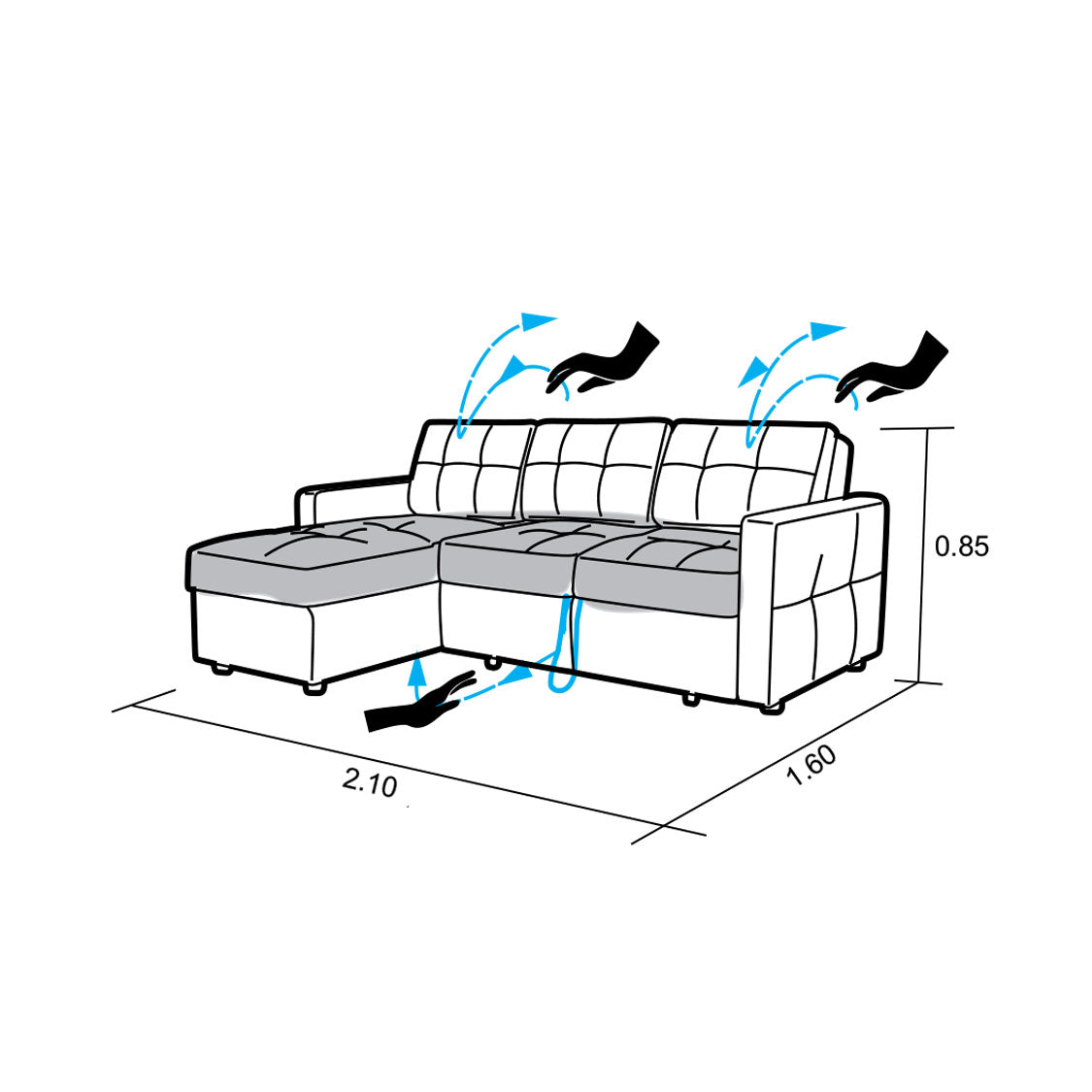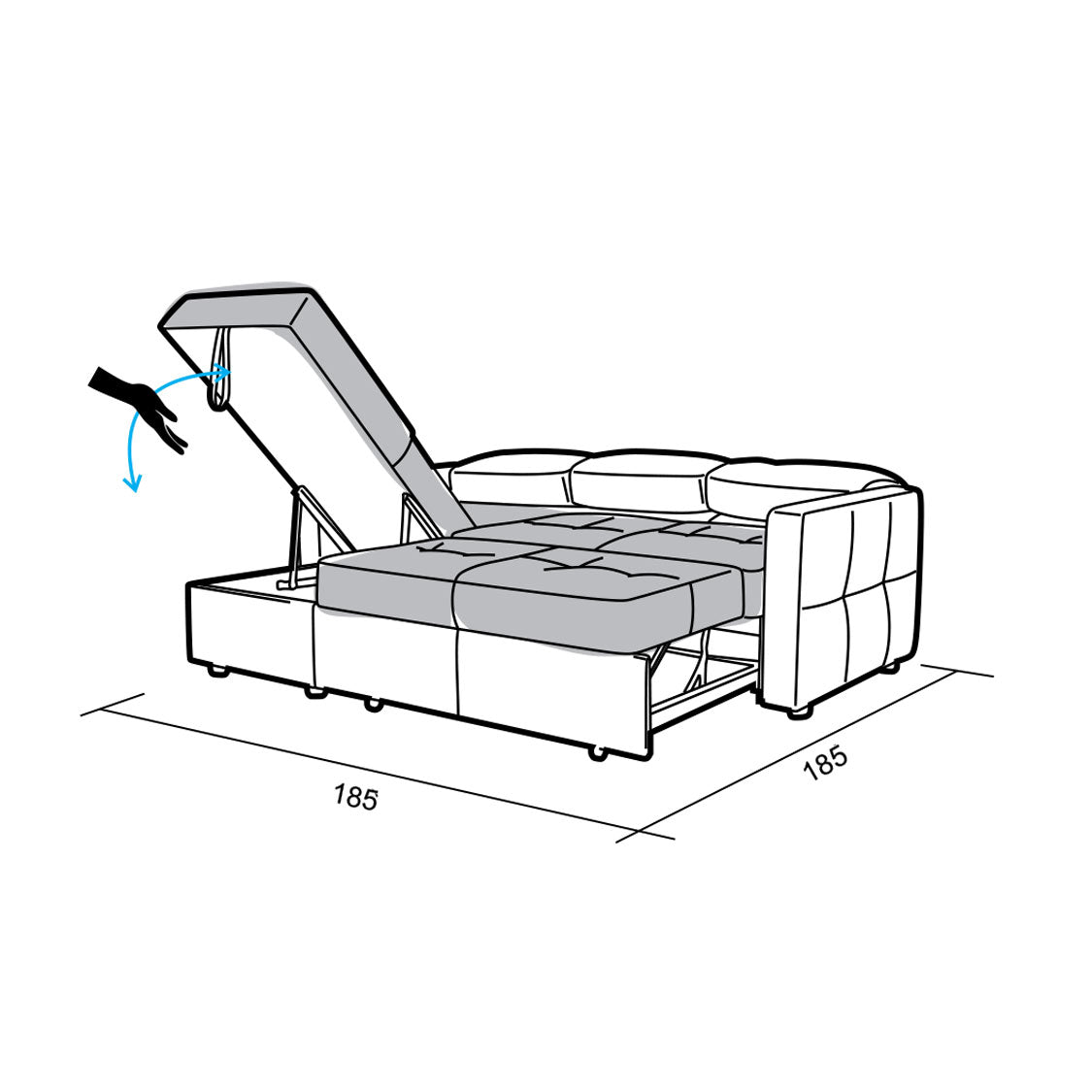 | Dimensiones Extendido | Alto 85 cm x Ancho 185 cm x Largo 210 cm |