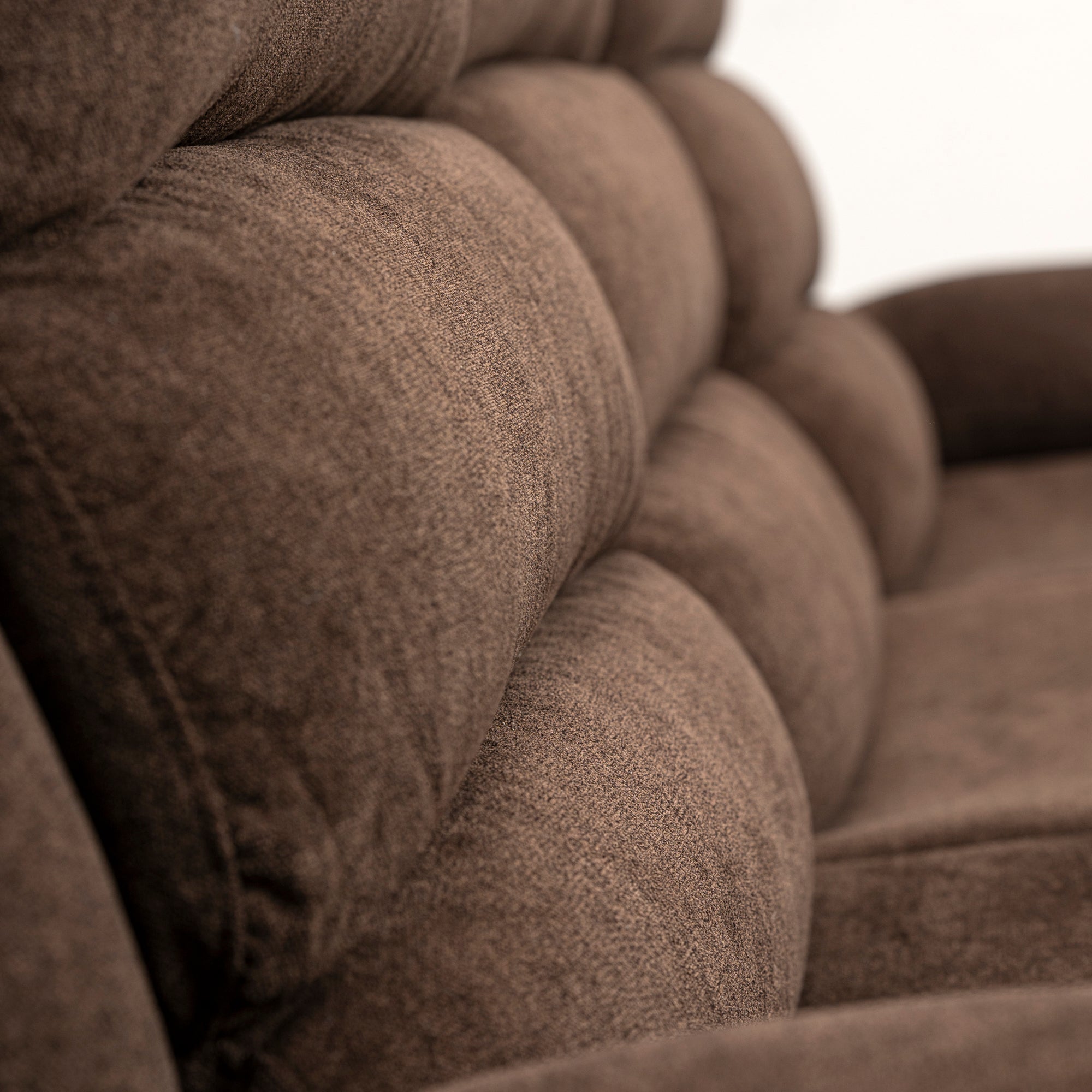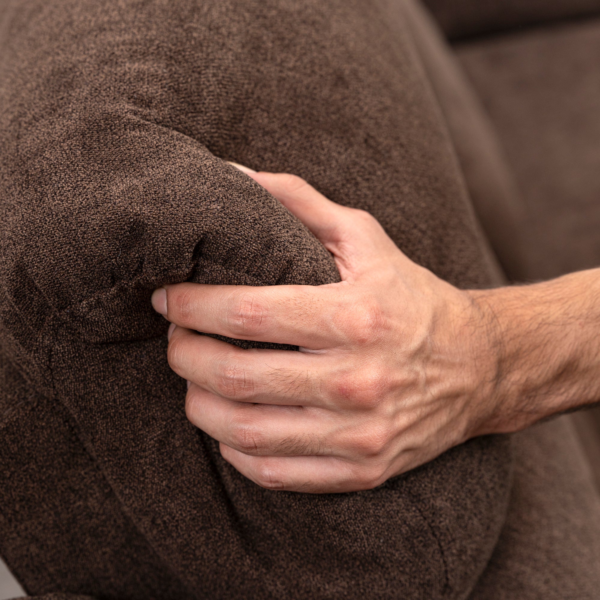 Tapizado en una cálida y resistente tela tipo lino en tono café, el Glory suma calidez visual y una textura agradable al tacto. Su acolchado de alto volumen en espaldar, asiento y brazos envuelve tu cuerpo con una sensación acogedora que invita a relajarse sin esfuerzo.
