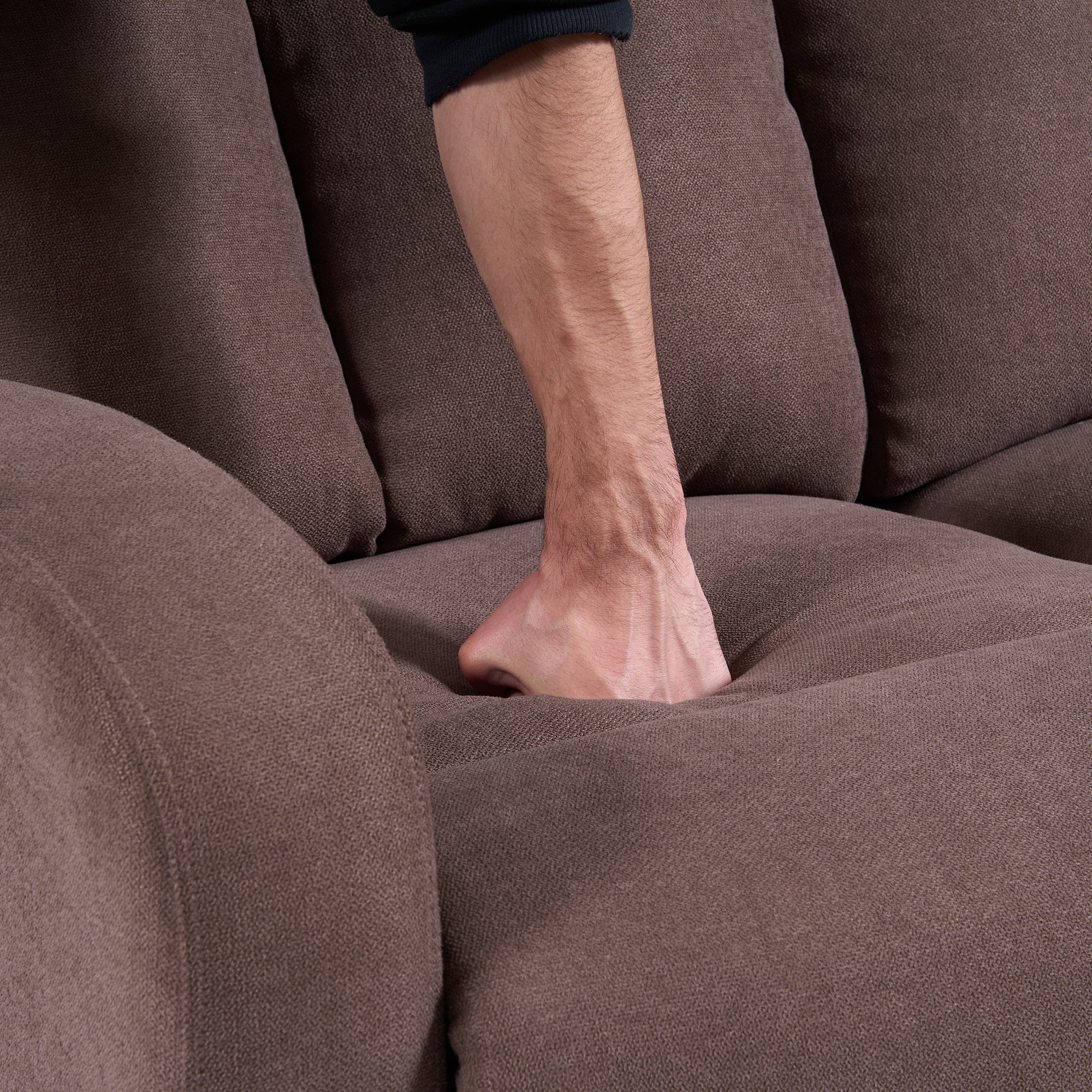 Tapizado en una elegante tela gris de alta resistencia, el Trudy combina con cualquier estilo de decoración, aportando un toque moderno y sofisticado. Sus asientos reclinables individuales te permiten ajustar la posición de manera personalizada, mientras que su respaldo alto y cojines mullidos brindan el soporte ideal para tu espalda y cuello.