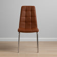 Cuenta con asiento tapizado en material sintético, fácil de limpiar y mantener, y patas metálicas con acabado cromado que aportan estabilidad, resistencia y un estilo moderno que se adapta fácilmente a diferentes espacios de comedor.