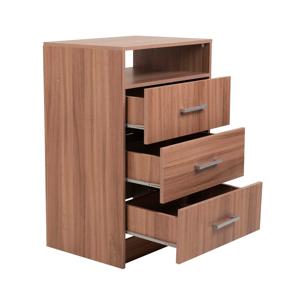 Cómoda de estilo moderno, con 3 cajones fabricado en mdp resistente al peso con acabado en revestimiento que asemeja las vetas de la madera es de fácil armado y útil para complementar los espacios de tu habitación, permitiendo almacenar de manera práctica y organizada