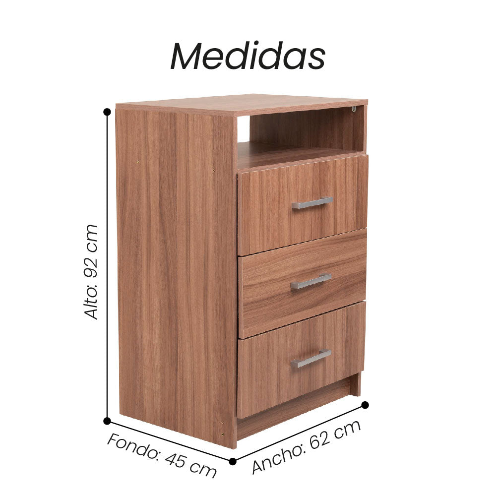 Cómoda de estilo moderno, con 3 cajones fabricado en mdp resistente al peso con acabado en revestimiento que asemeja las vetas de la madera es de fácil armadoyútil para complementar los espacios de tu habitación, permitiendo almacenar de manera práctica y organizada