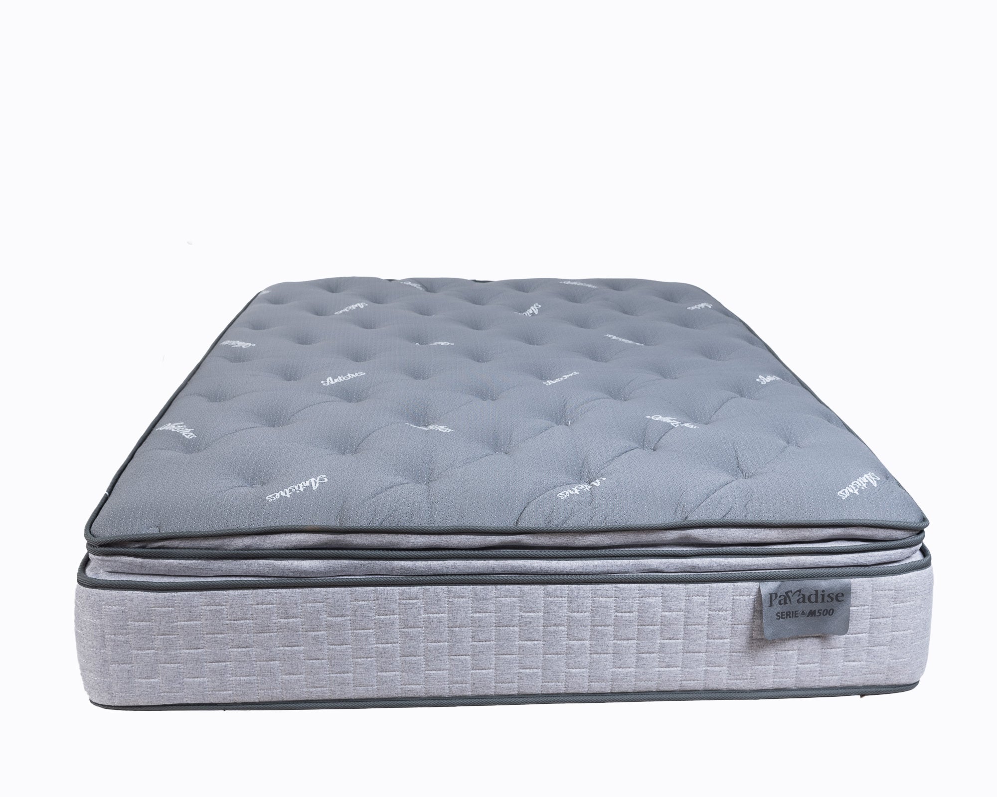Sumérgete en una experiencia de descanso superior con el Colchón Paraíso U/C Serie M500, diseñado para ofrecerte el equilibrio perfecto entre soporte y suavidad. Su innovadora estructura pillow top brinda una sensación de confort envolvente, mientras que su firmeza óptima garantiza el soporte adecuado para tu columna.