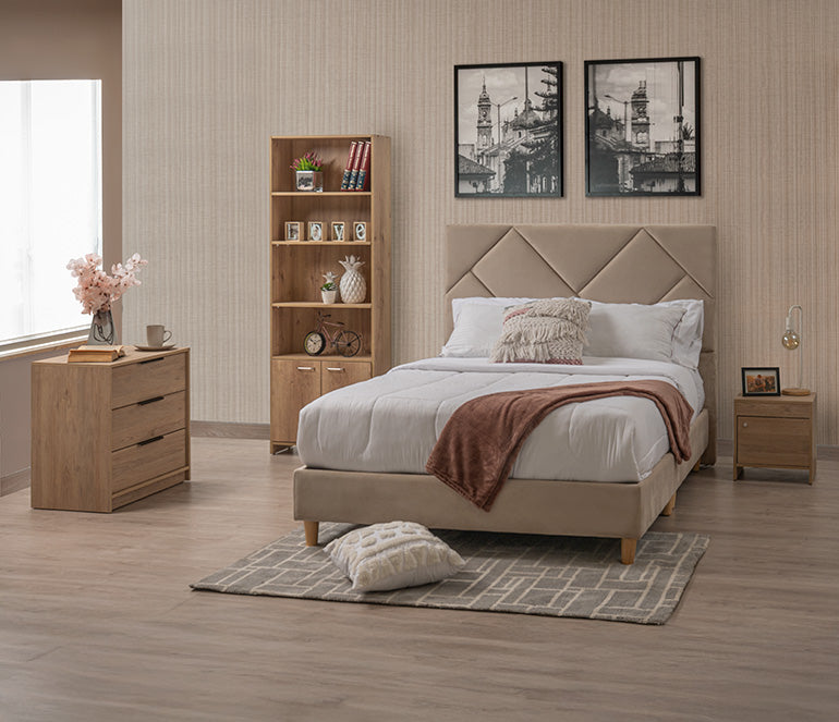 COMBO Uddine (Cabecero Uddine + Base Cama Tapizada + Colchón New Zabra Topazio)