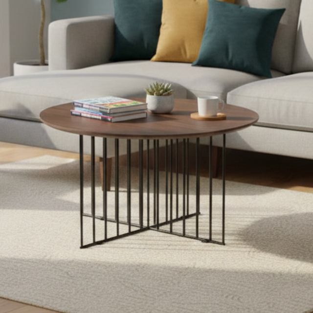 La Mesa de Centro Wenoma Gran aporta un soplo de modernidad con un marcado estilo industrial. Su diseño redondo la convierte en una pieza versátil y funcional, ideal para compartir una copa, jugar o complementar tu sala con equilibrio y carácter. Gracias a su estructura sólida y su estética limpia, se adapta fácilmente a diferentes usos y estilos de decoración, convirtiéndose en un punto central práctico y atractivo.