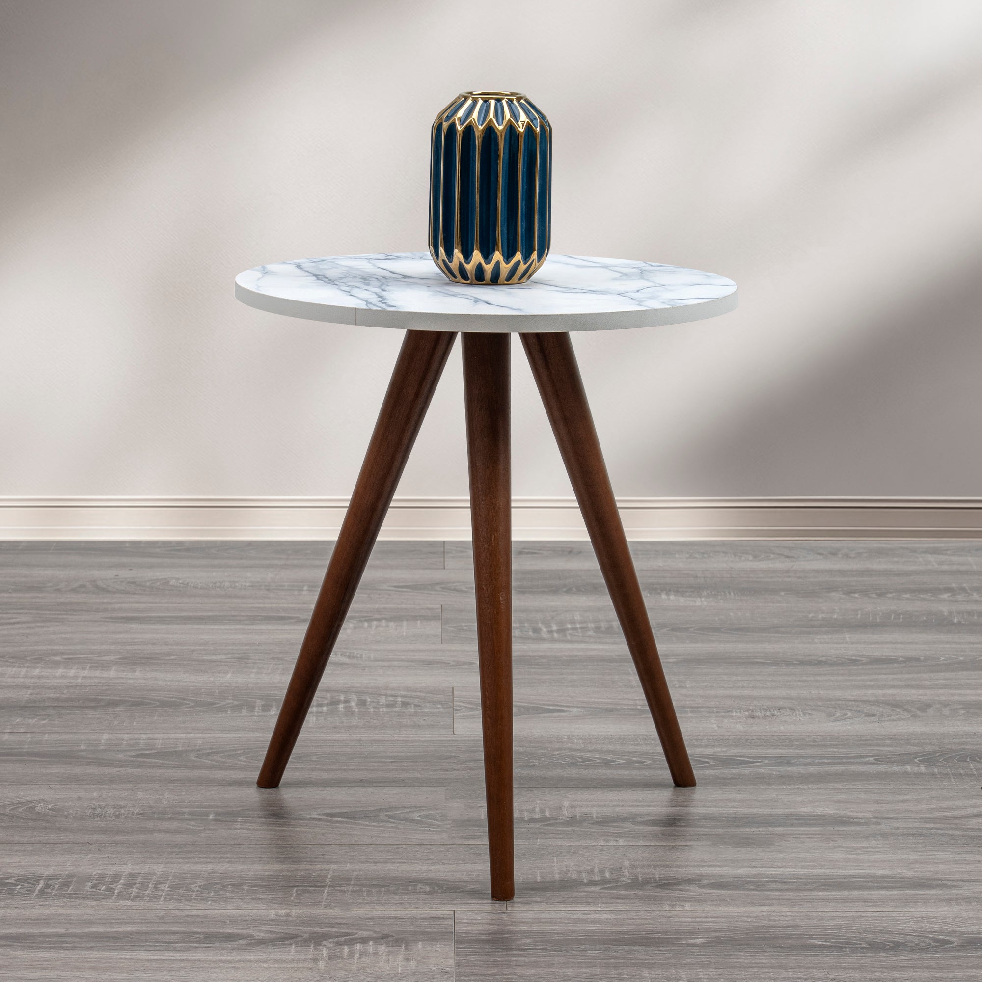 Pequeña en tamaño, grande en estilo. La Mesa Auxiliar Flax 400 es la pieza perfecta para complementar tu sala, estudio o habitación con un toque sofisticado y retro. Su cubierta redonda con acabado efecto minimalista aporta elegancia y frescura, mientras que sus tres patas cónicas en madera oscura evocan un diseño escandinavo clásico que nunca pasa de moda.