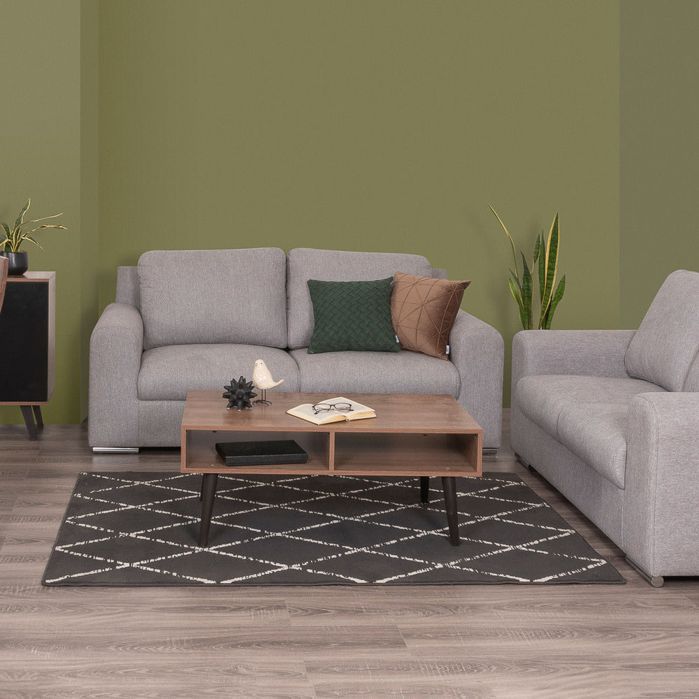 Con patas cónicas que le dan una silueta ligera y dos amplios compartimientos abiertos, esta mesa no solo embellece tu hogar, sino que también te brinda el espacio ideal para organizar libros, controles o tus decoraciones favoritas.