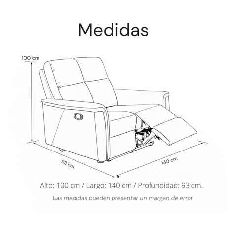 Sofá Tacito eléctrico reclinable 1P