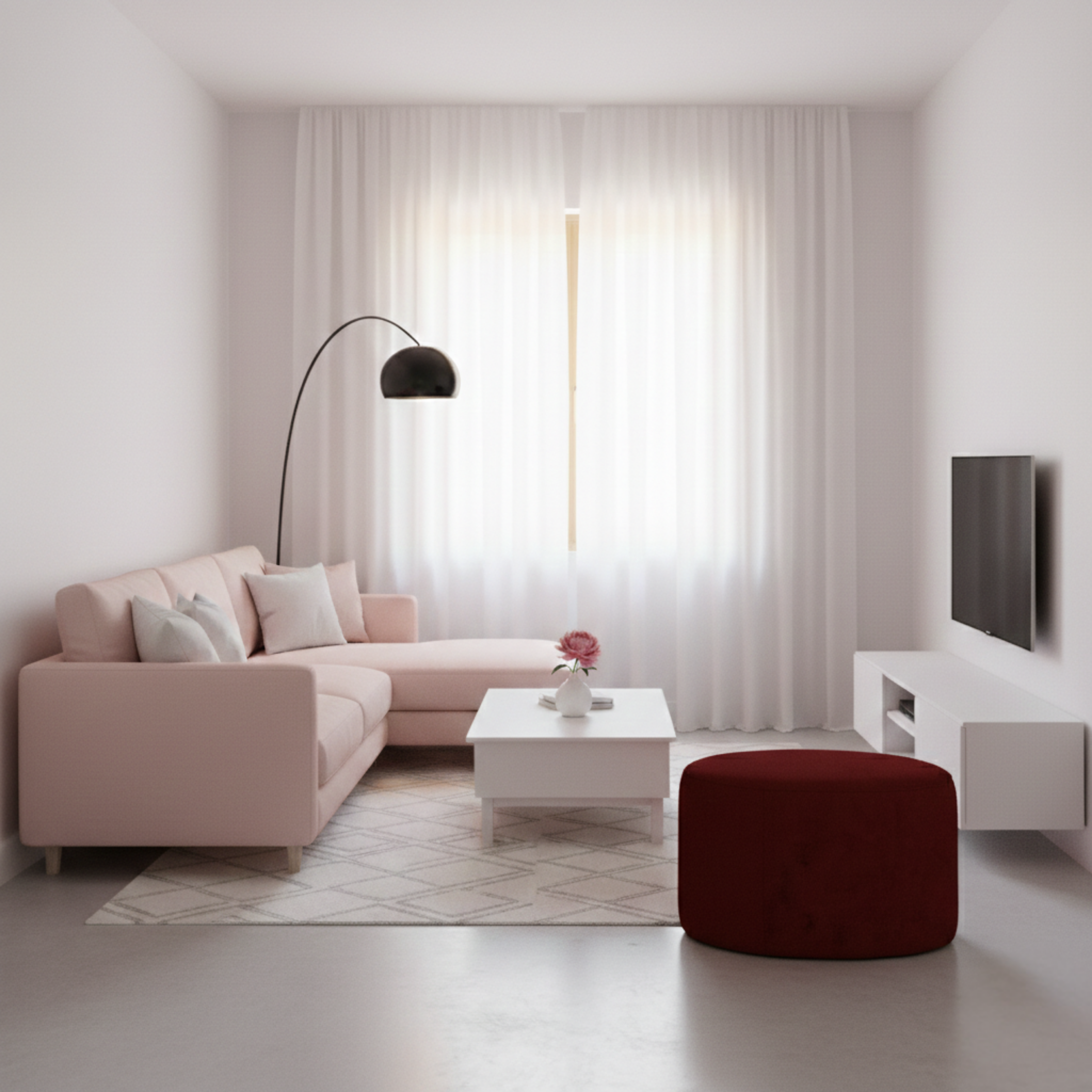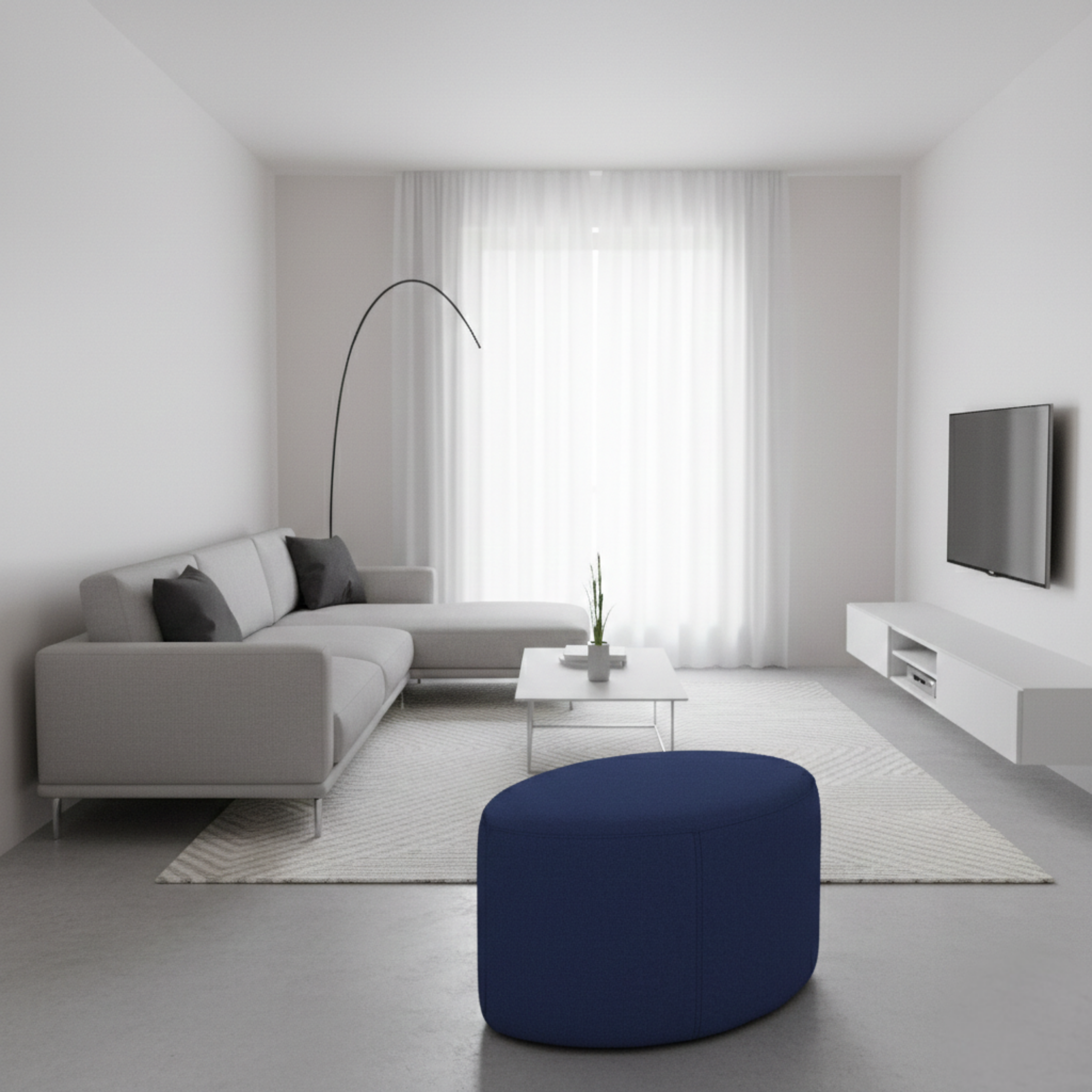 El Puff Sofía es el complemento ideal para darle vida a una sala neutra. Su diseño ovalado y su tono verde suave aportan un acento elegante que transforma el espacio sin recargarlo.