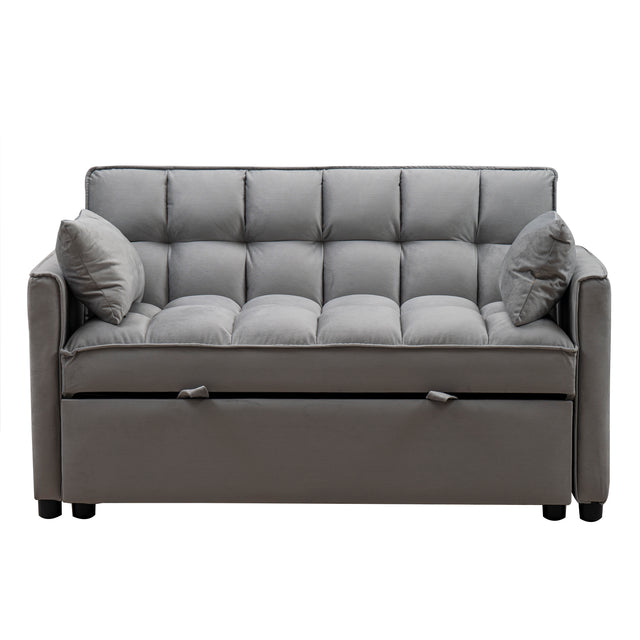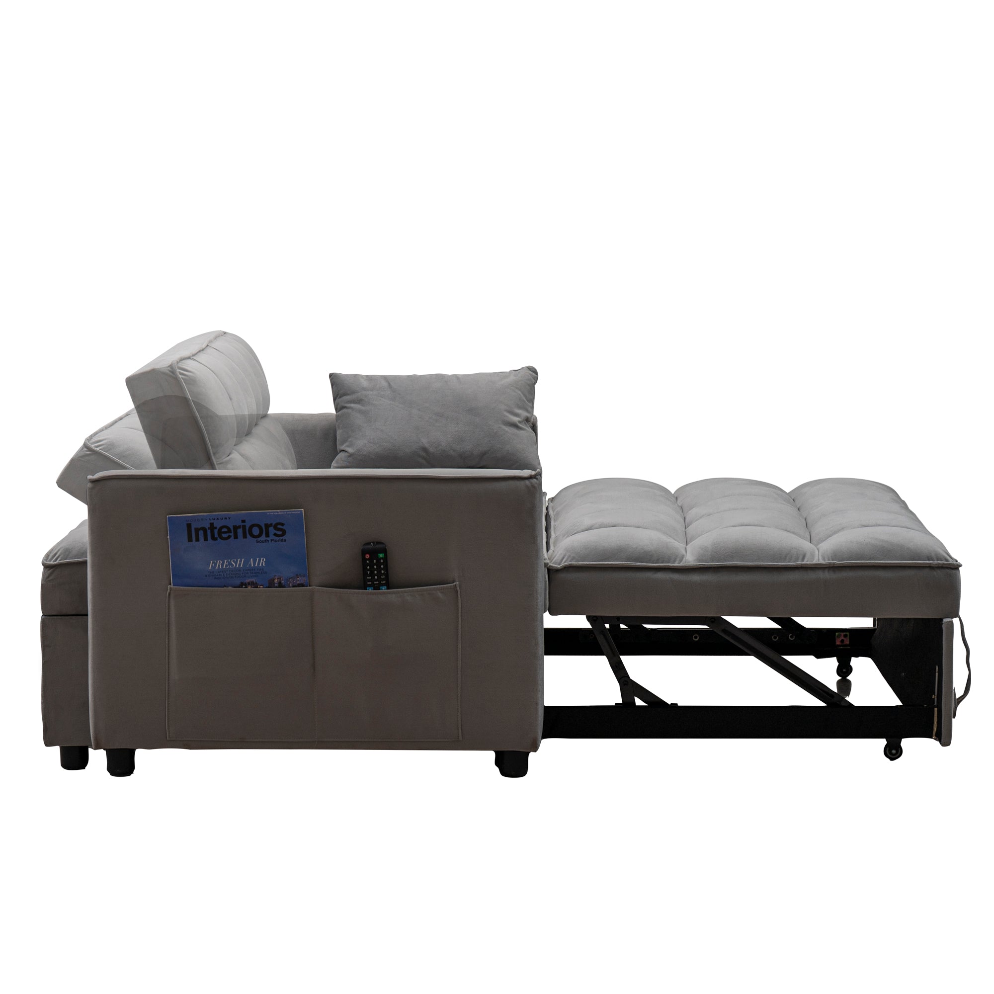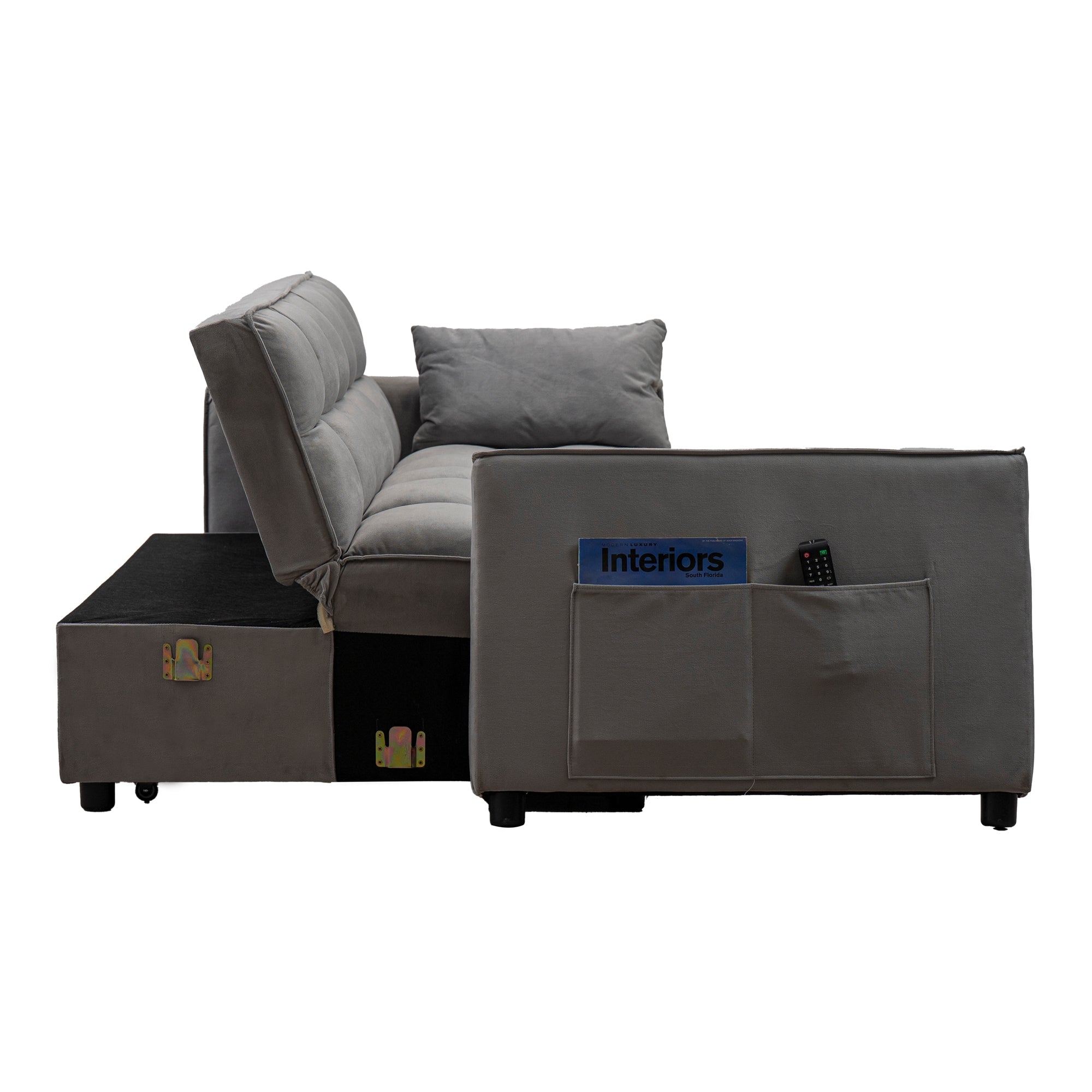 Optimiza tu espacio sin renunciar al diseño con este sofá cama multifuncional en color negro, ideal para quienes buscan soluciones inteligentes con estilo. Tapizado en una tela gris suave al tacto, este sofá no solo ofrece confort, sino también funcionalidad gracias a sus compartimientos laterales integrados y cojines decorativos incluidos.