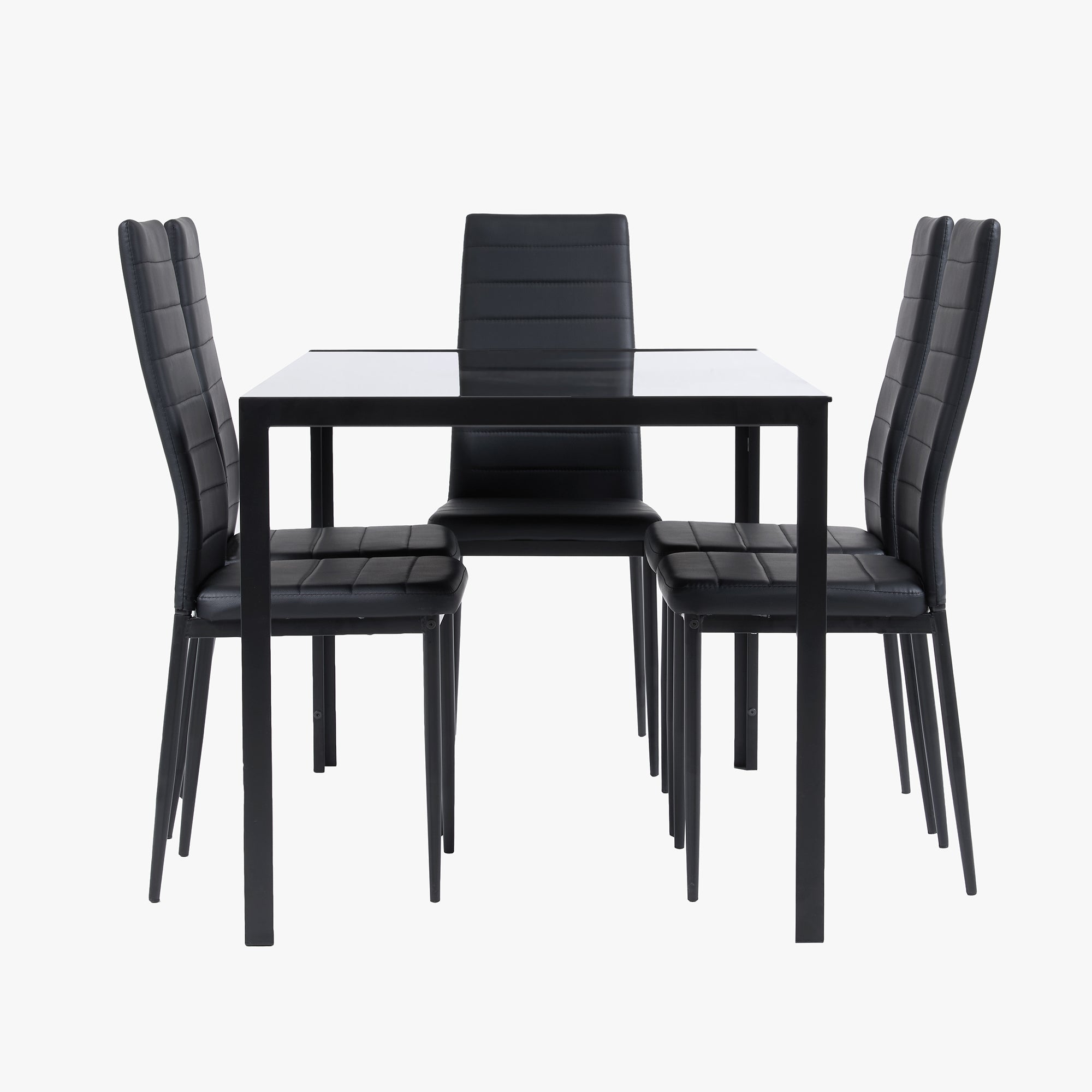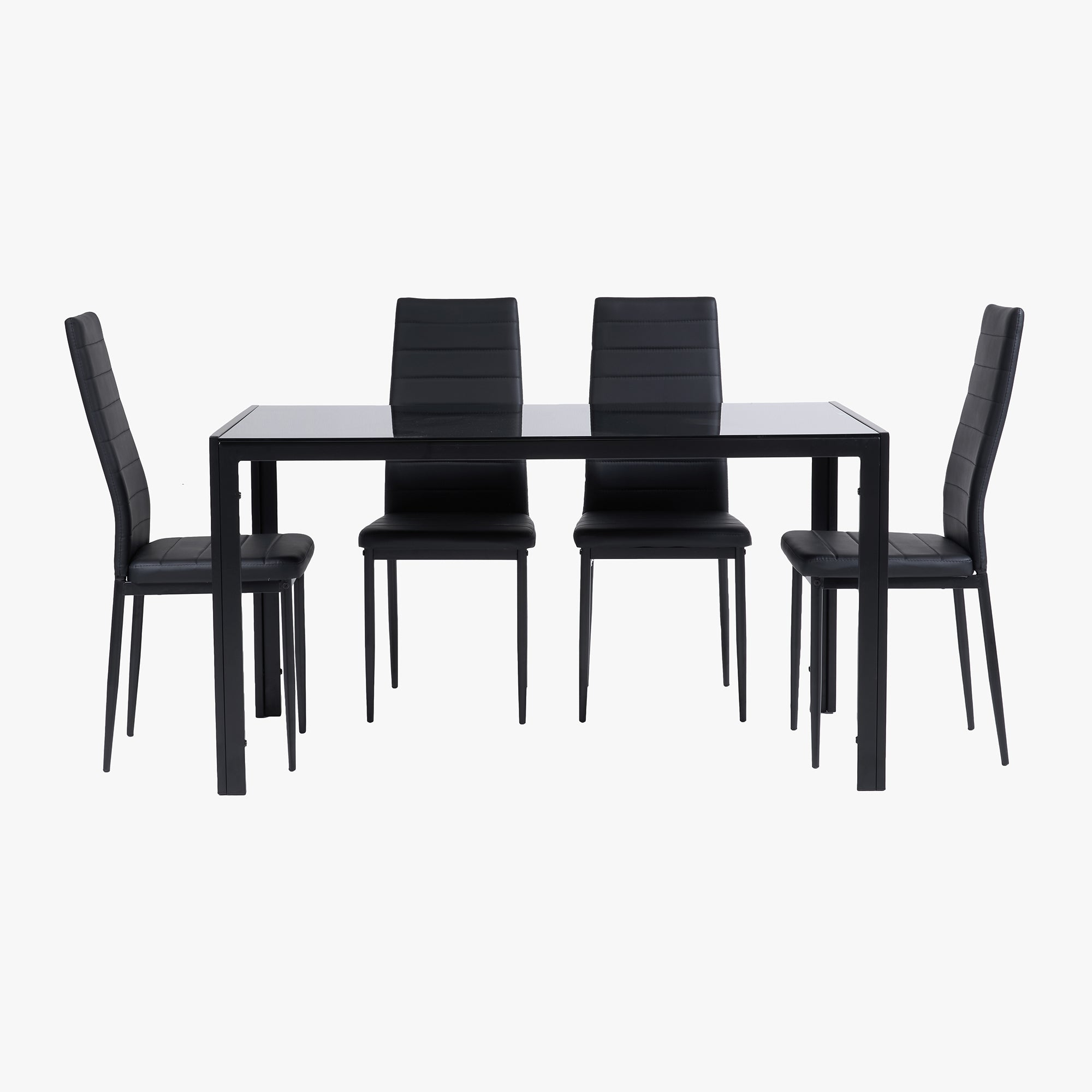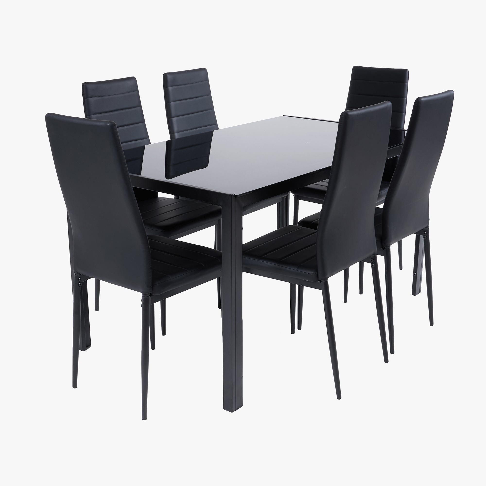 La fusión de texturas y el color negro hacen de este comedor una opción asequible y versátil, ideal para aquellos que buscan un comedor funcional para su uso ocasional.