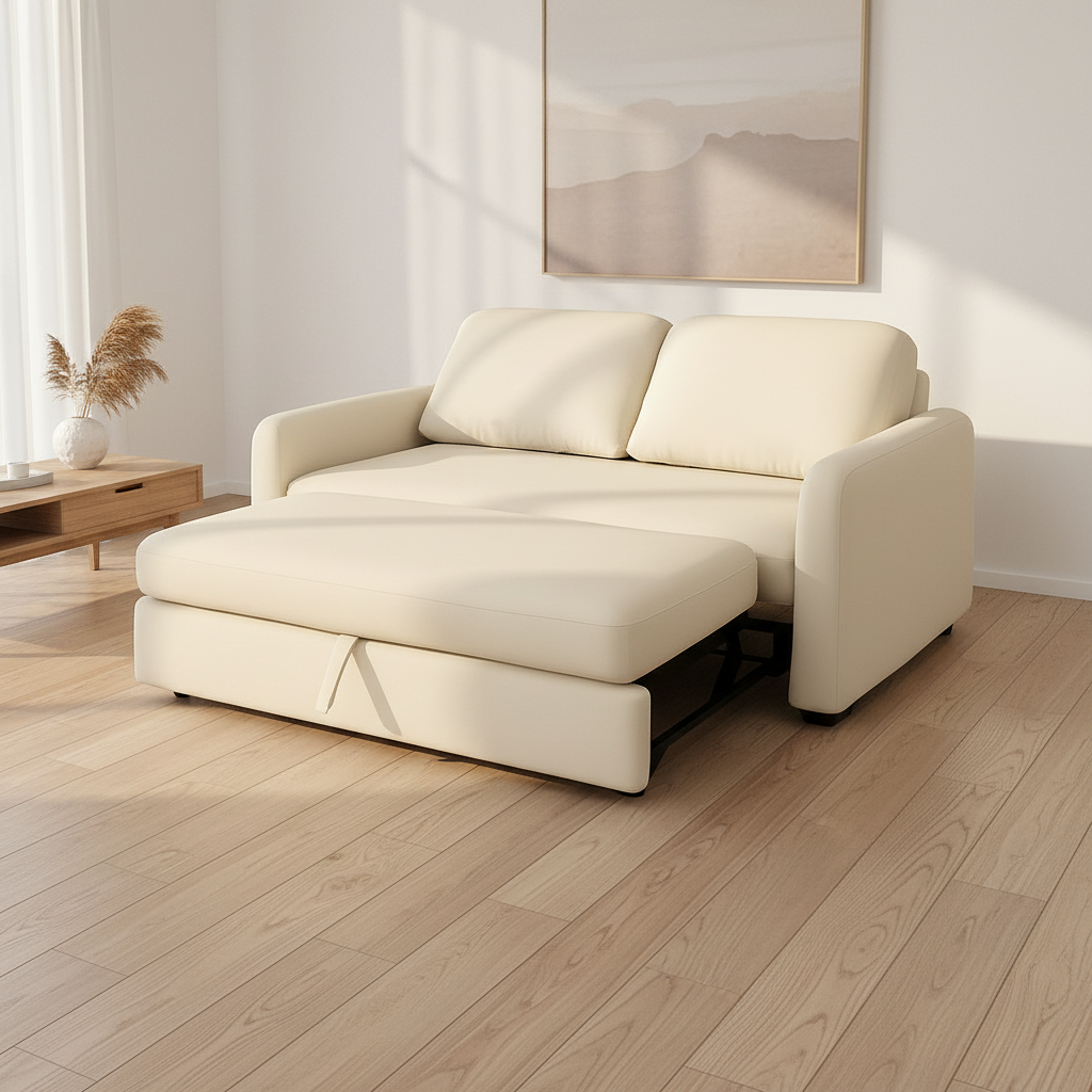 Con su doble función de sofá y cama auxiliar, cubre con las necesidades de un espacio