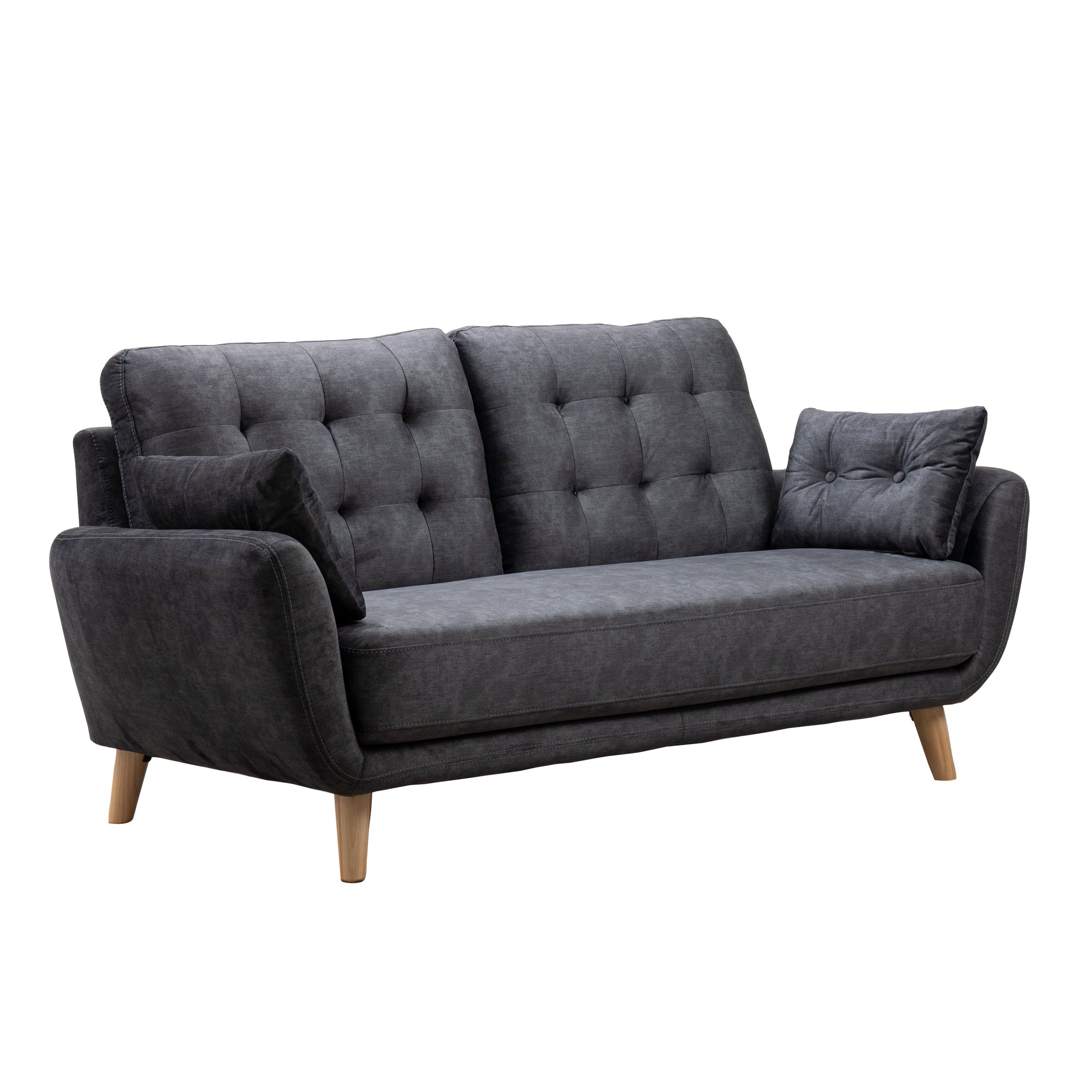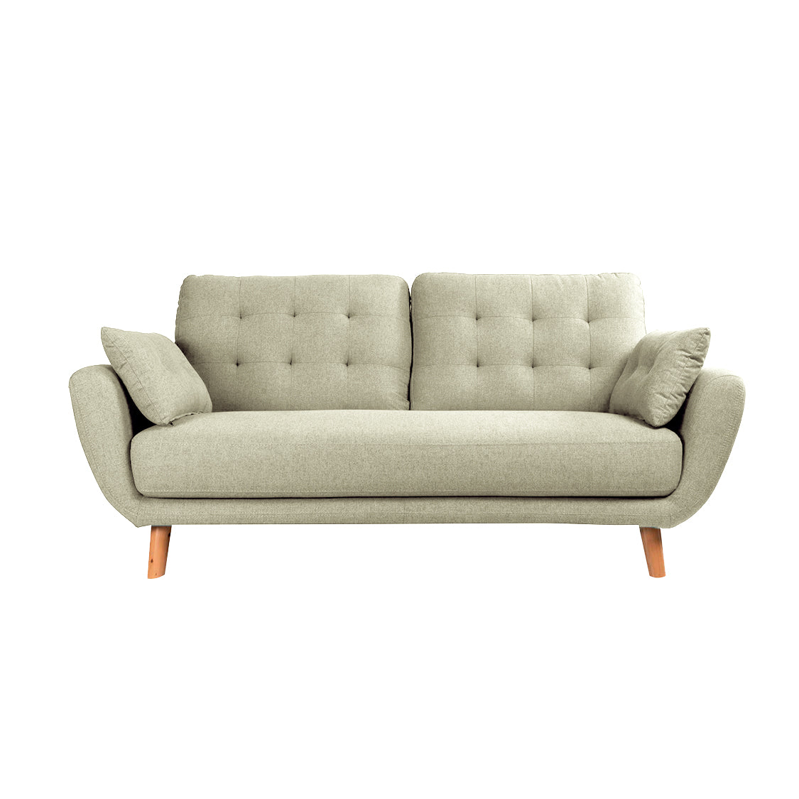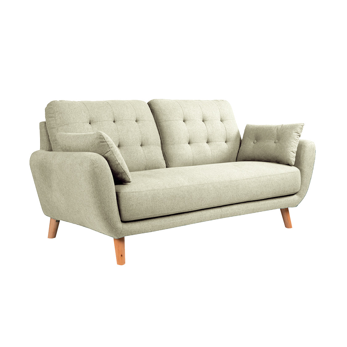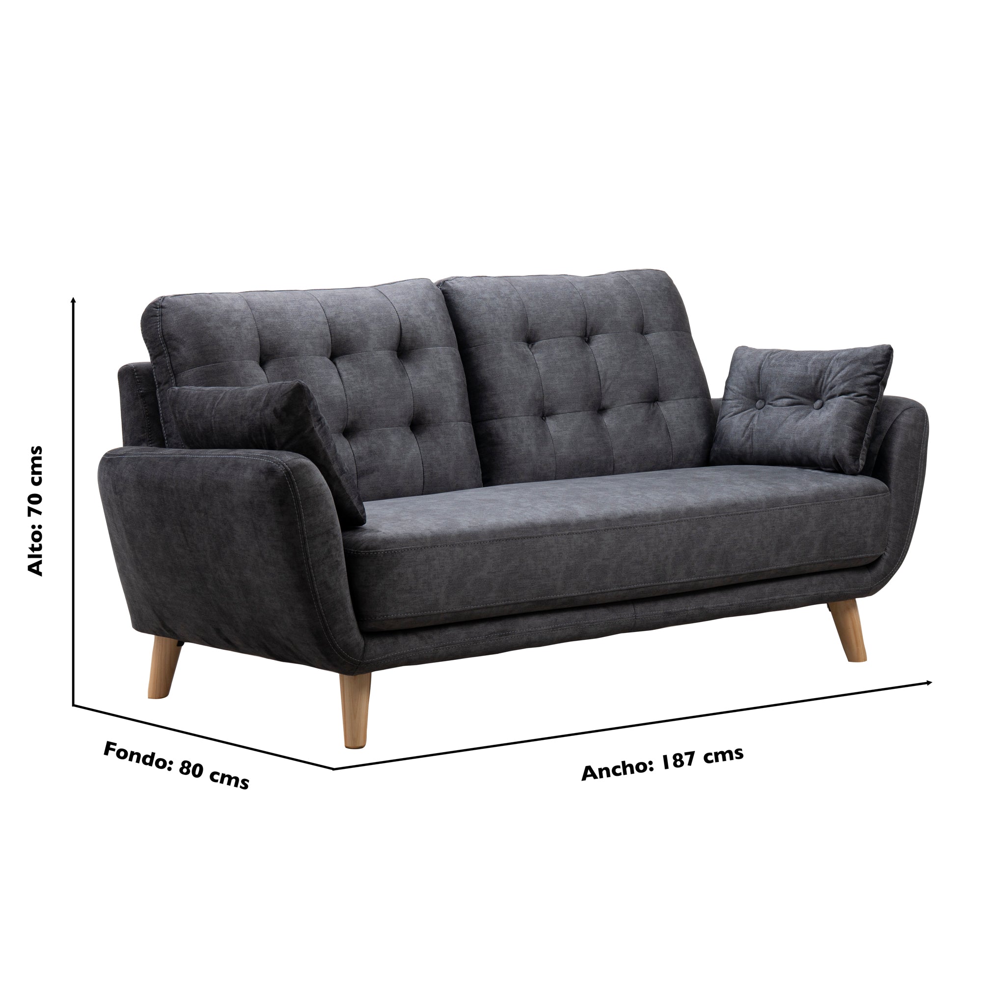Los sofás pequeños son piezas ideales para un espacio reducido, el sofá Eberhard 3 Puestos con sus detalles de abotonado en el espaldar y sus cojines auxiliares hacen de él un sofá cómodo y de estética simple, hecho 100% por manos colombianas, con estructura en madera de pino inmunizada y tratada, protegiéndolo de plagas,