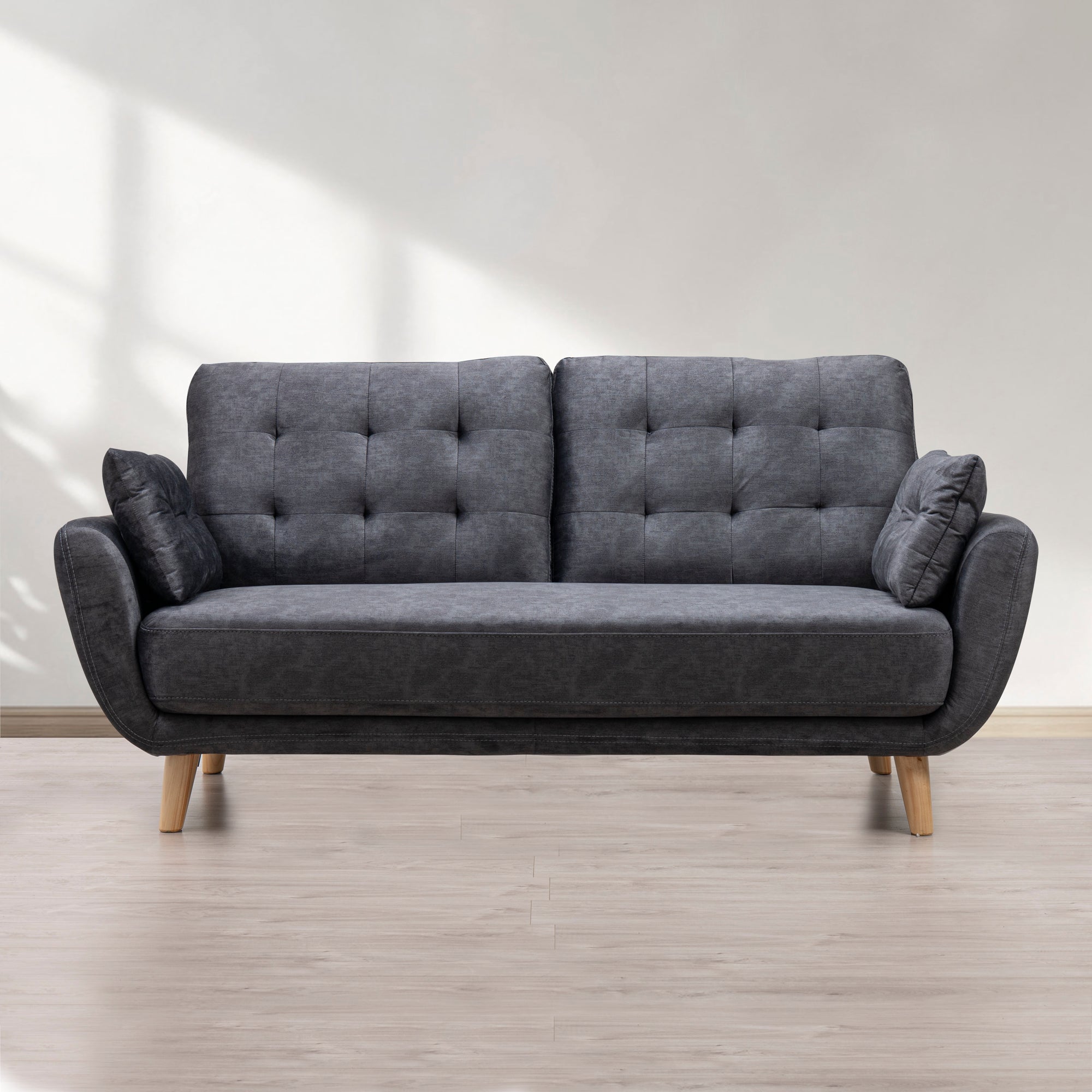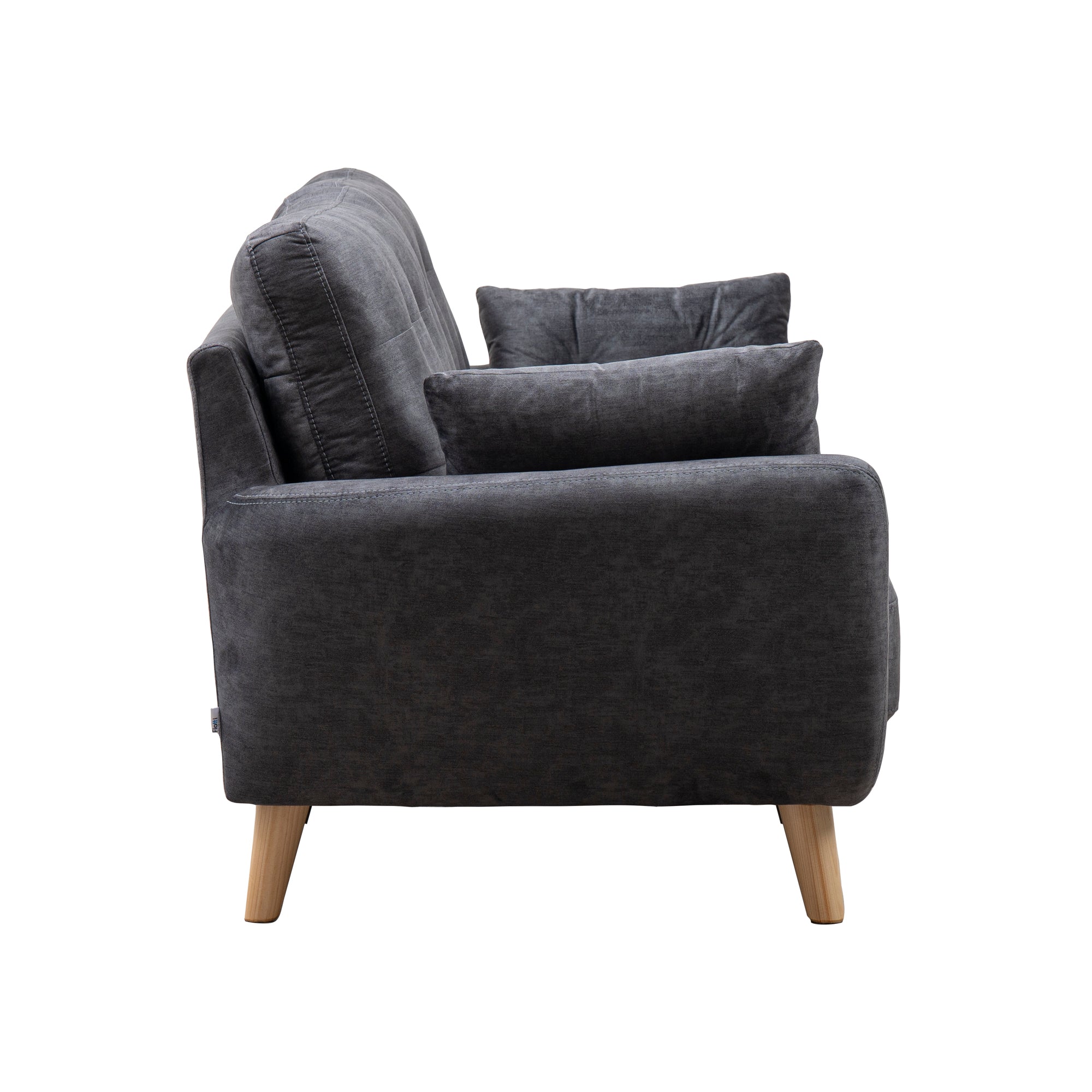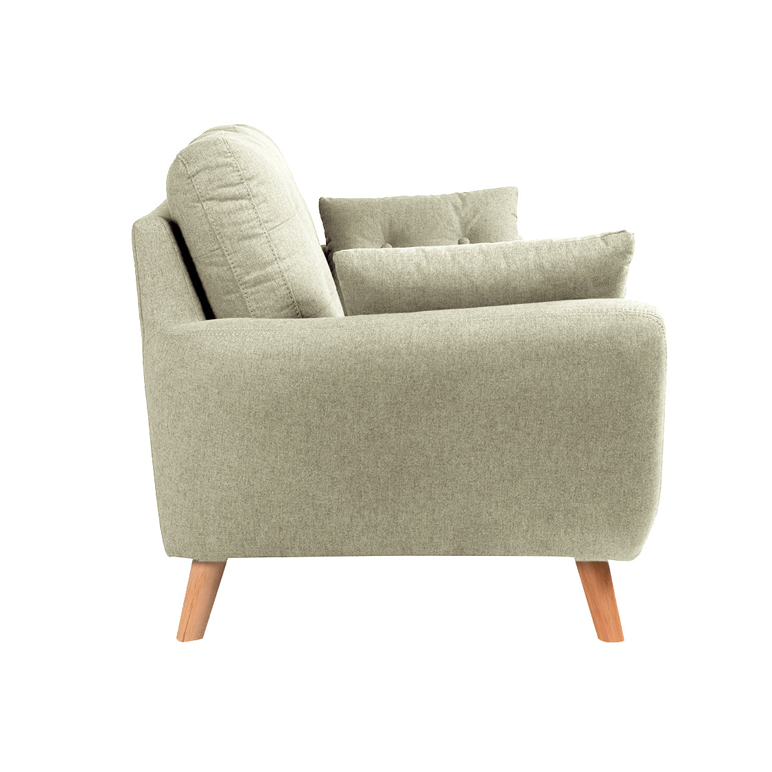 Tapizado con tela de microfibra, que puedes combinar con accesorios en colores neutros dando un contraste inspirador en tu espacio, las patas cónicas madera de pino color natural.