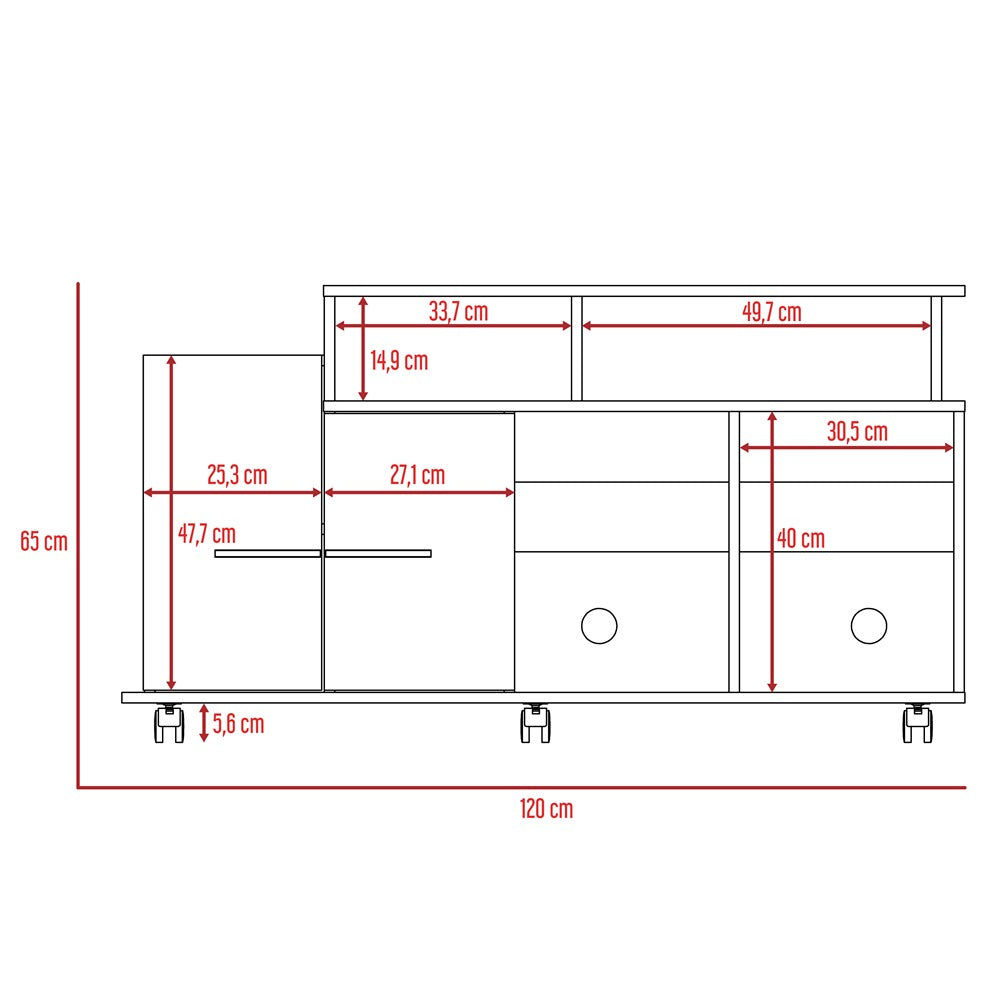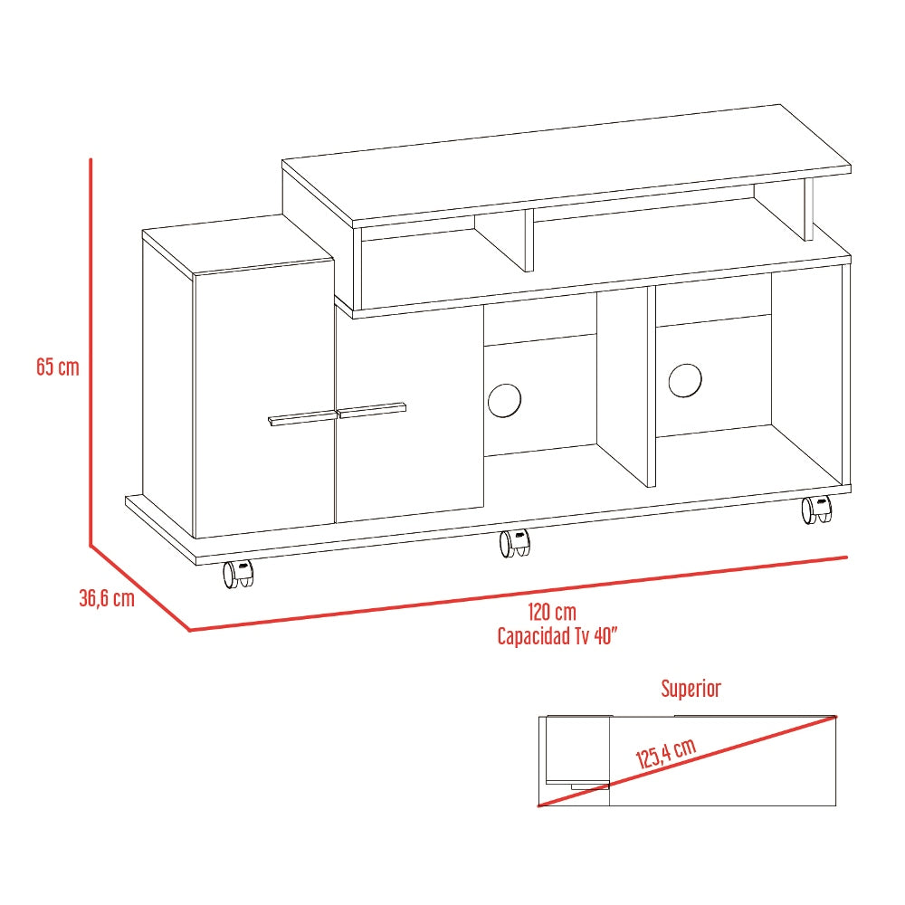 Rack para TV de 50'' máximo, dos puertas batientes, espacios para ubicar equipos de audio y video