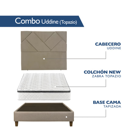 COMBO Uddine (Cabecero Uddine + Base Cama Tapizada + Colchón New Zabra Topazio)