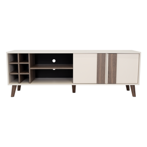 Rack para TV 65'' máximo, con dos puertas abatibles, diseño moderno, fácil armado, patas metalicas