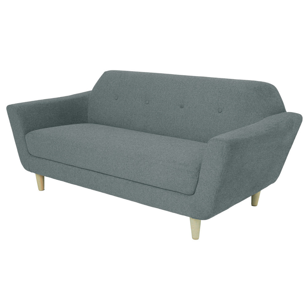 Tapizado con tela, perfecto para combinar con accesorios y cojines en colores cálidos, las patas son torneadas en madera de pino color natural, de 30 cm de altura para dar más ligereza al diseño.